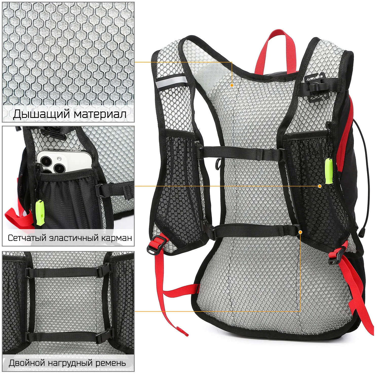 | Карманы | боковые карманы / карман для бутылки / карман на поясном ремне / карман на лямке |