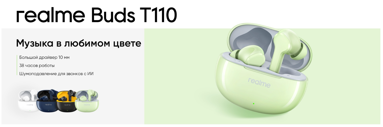 Беспроводные наушники Realme Buds T110 зеленый 2 380 ₽ Подробнее