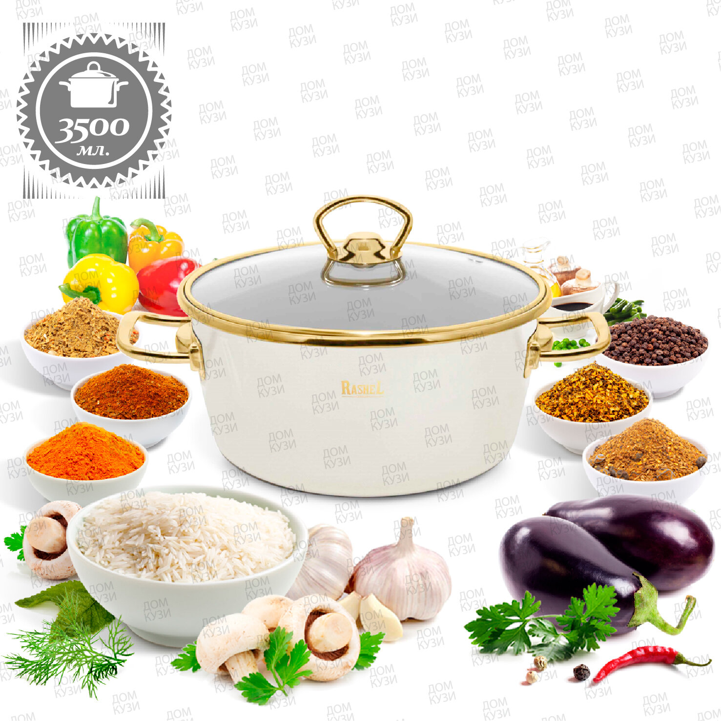 Кастрюли Кастрюля 3,5 л эмалированная Rashel с крышкой "под золото" 22см белый