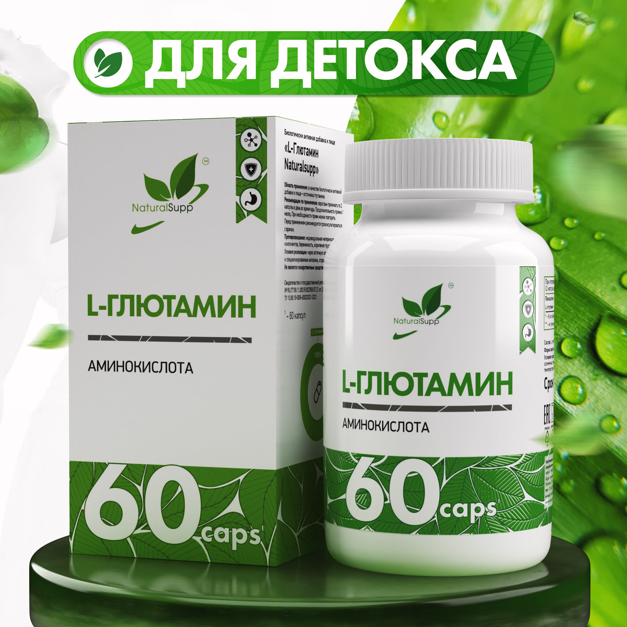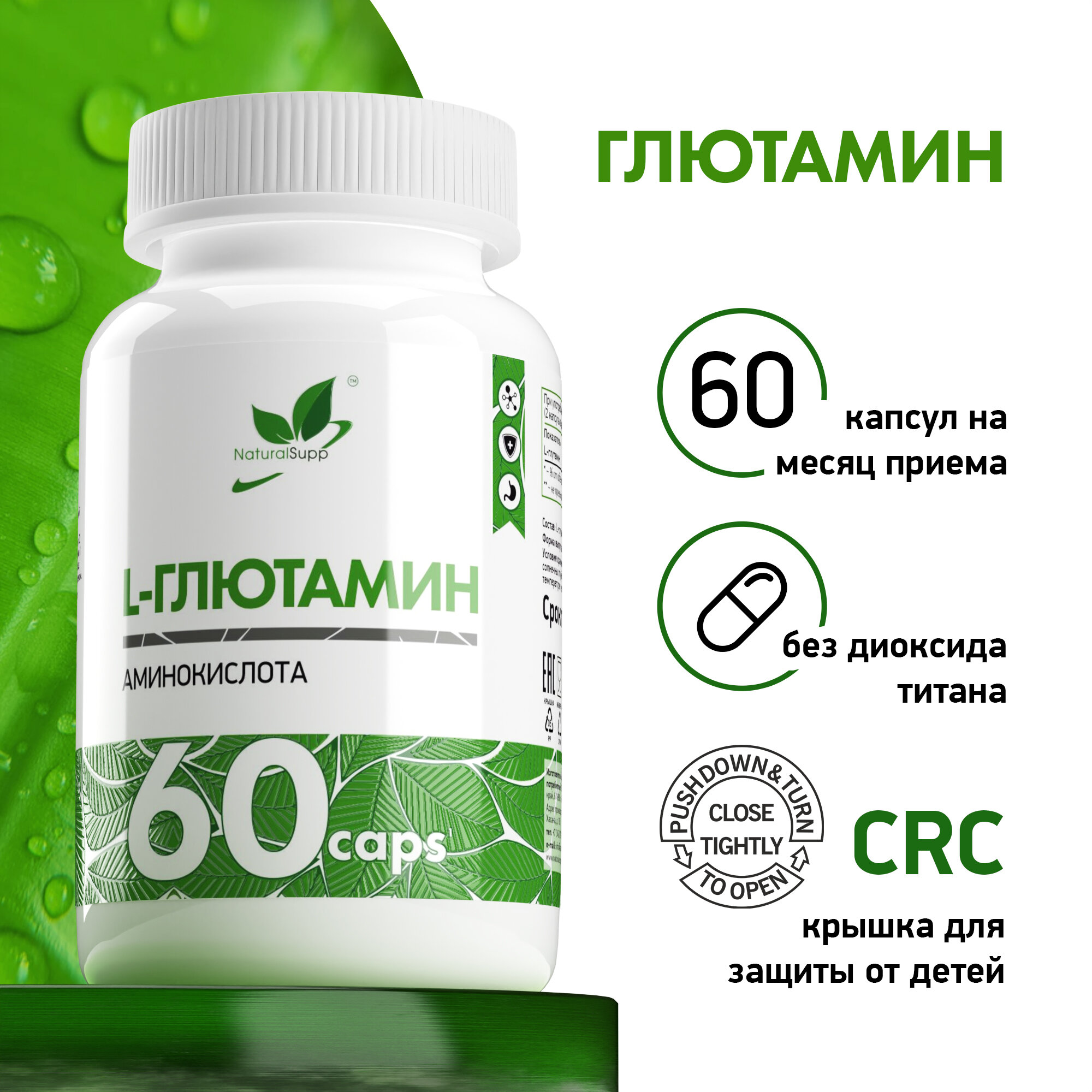 Аминокислоты NATURALSUPP Л-Глютамин, 500 мг, 60 капсул