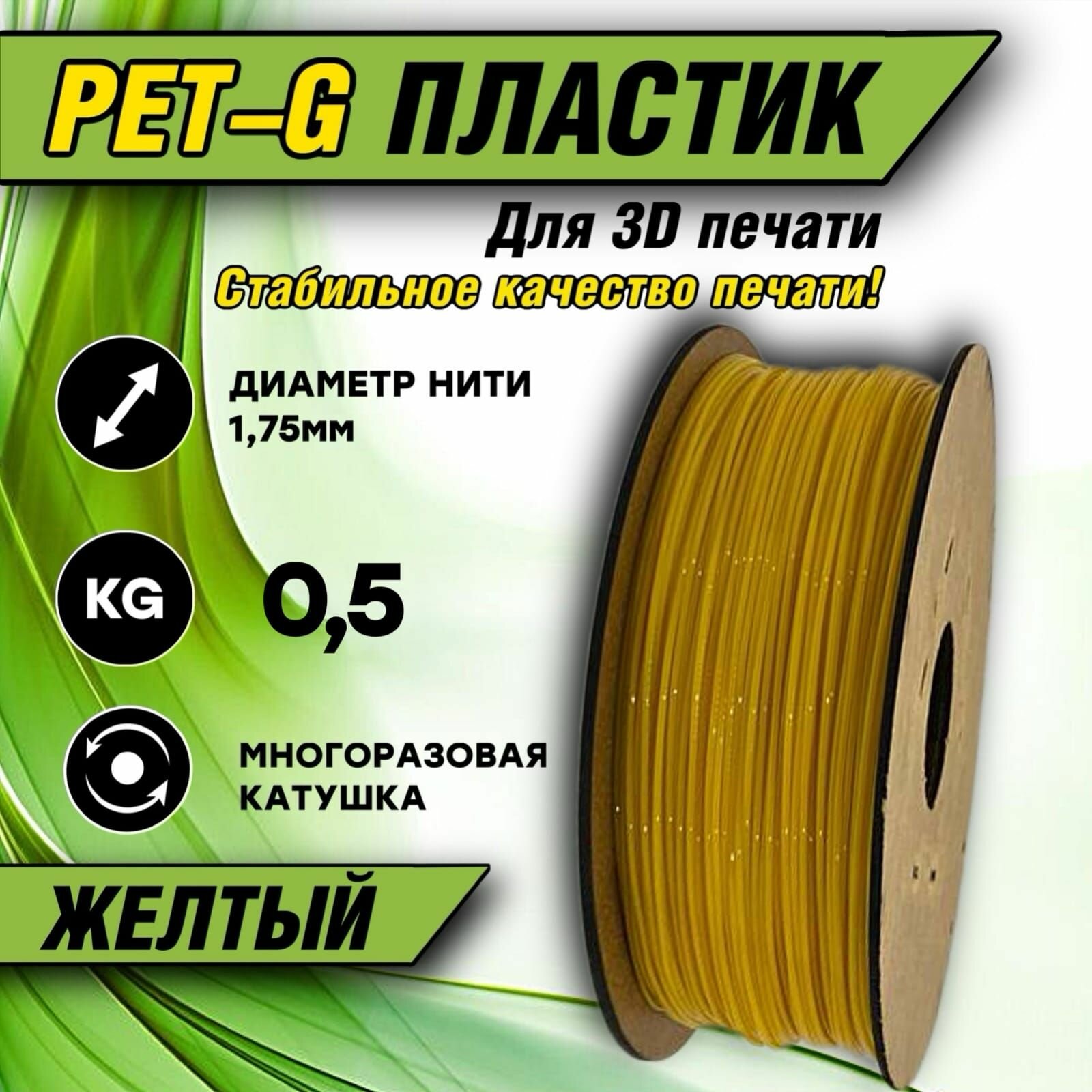 Пластик для 3D печати Пластик для 3d принтера PETG 1.75 "Желтый", 0,5 кг.