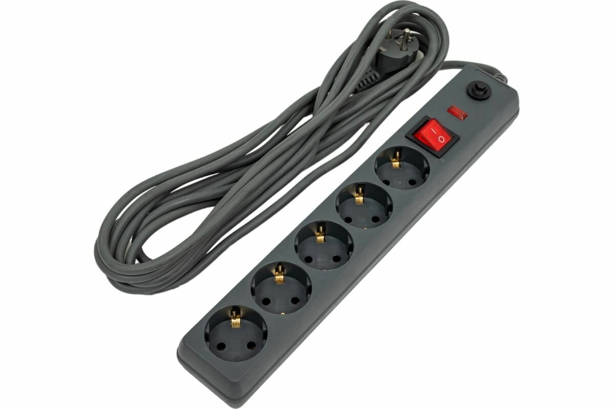 Сетевые фильтры и удлинители Удлинитель с сетевым фильтром 5х5м с заземл. с выкл. 16А с защитой