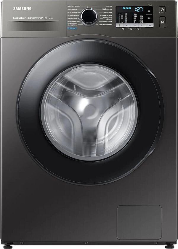Узкая стиральная машина Samsung WW80AG6S28ANLP, 8 кг, с электронным управлением, инверторным мотором, технологией Quick Drive, функцией Volt Control, графит / черный 62 190 ₽ Подробнее