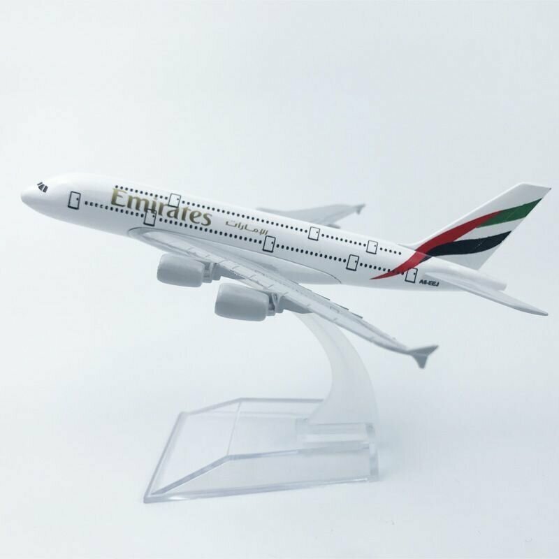 Сборные модели (моделирование) Модель самолета 15 см, Airbus a380 "Emirates", металл, на подставке