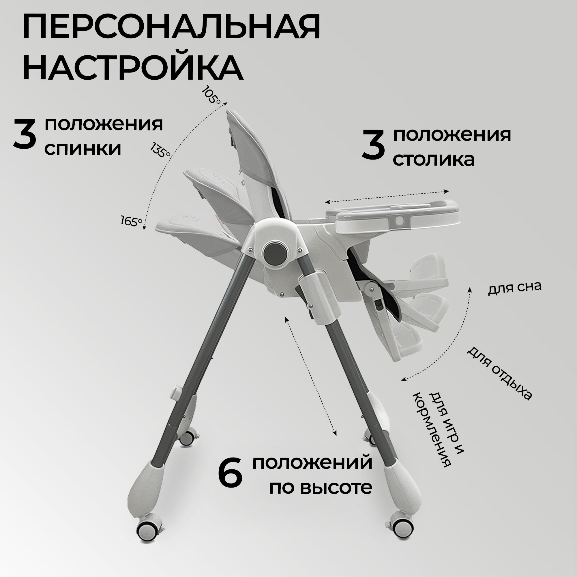 | Дополнительно | съемный столик / столешница с бортиком / ремни безопасности |