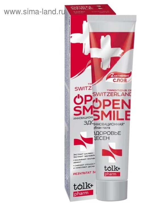 Лучшие цены. Зубная паста TOLK Traditions Of Switzerland Open Smile оказывают антибактериальный и противовоспалительный эффект, снимают отечность и укрепляют десны. Экстракт Шалфея в пасте TOLK Traditions Of Switzerland Open Smile обладает антисептическим и вяжущим действием. Сохраняет полезную микрофлору в полости рта и уменьшают кровоточивость десен. Экстракт Эдельвейса богат природными биофлавоноидами, оказывает антиоксидантное и антистрессовое действие, улучшает микроциркуляцию крови в тканях десен, оказывая. Магазины в вашем городе.