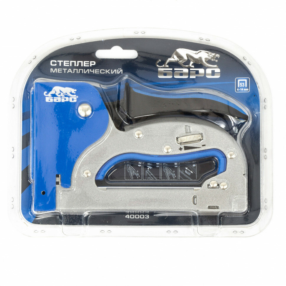 Строительный степлер Степлер металлический, регулировка удара, двухкомпонентная рукоятка, тип скобы: 53, 4-14 мм Барс 40003