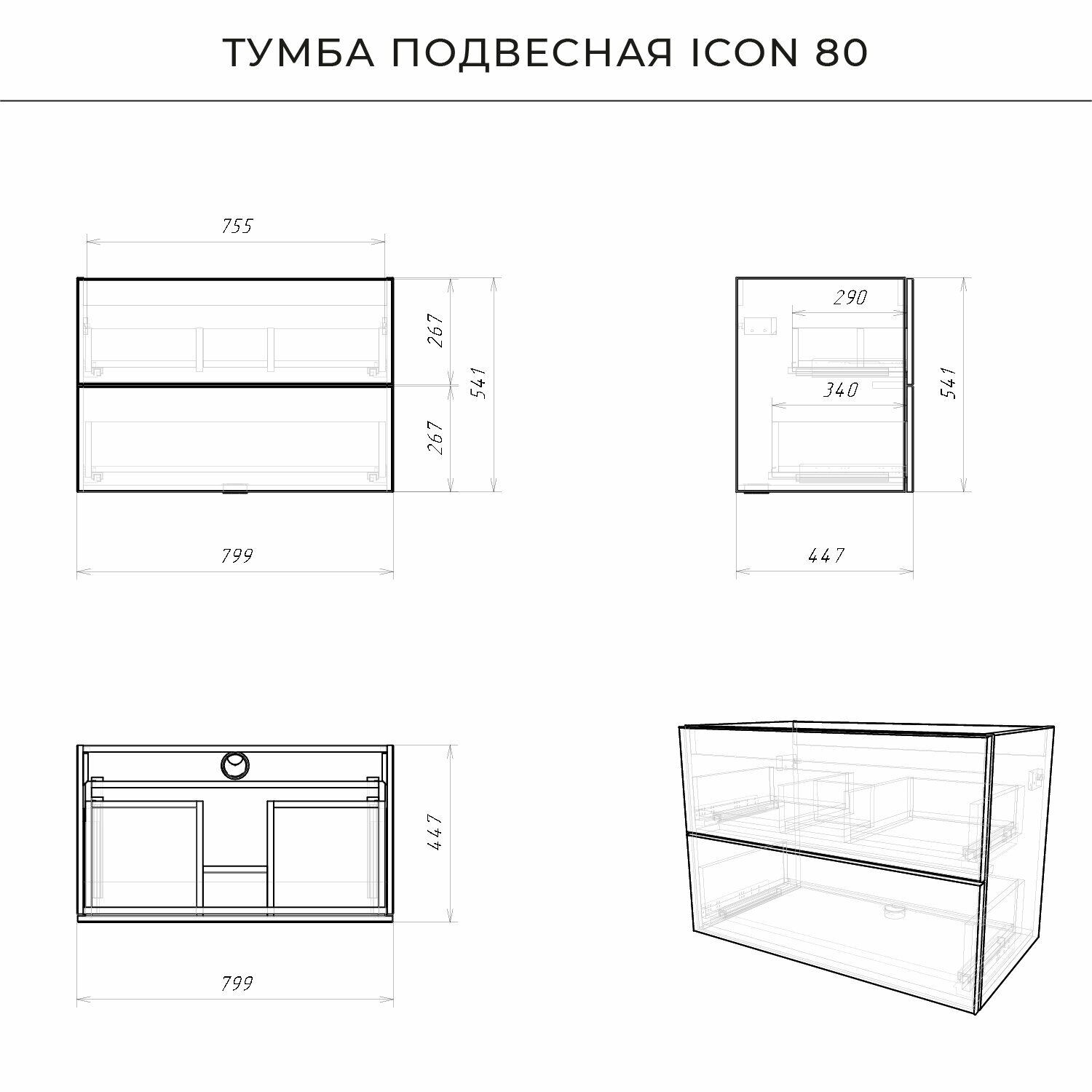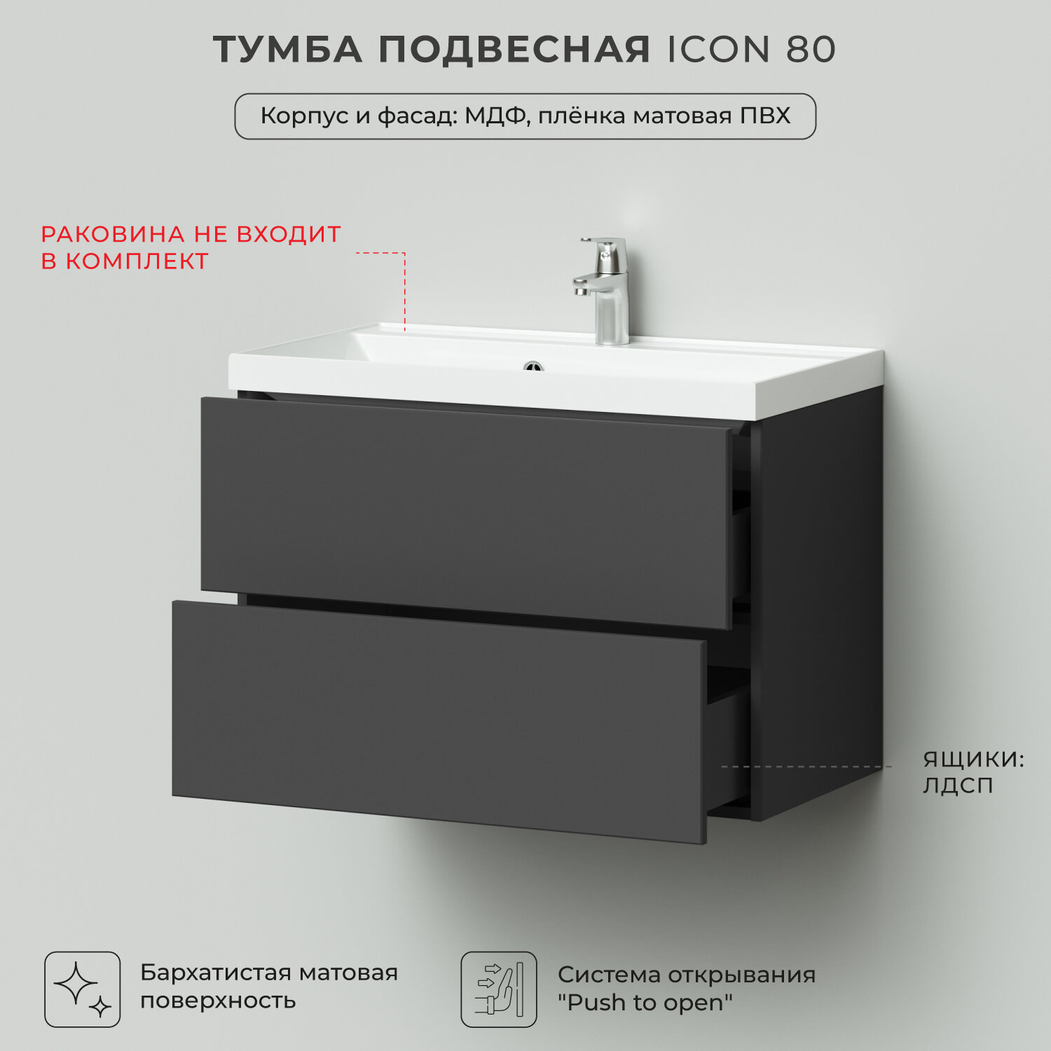 Тумбы под умывальник Tумба под раковину в ванную / Тумба для ванной Итана Icon 80 799х447х541 Графит подвесная // под Раковина для ванной Итана Clarissa 80