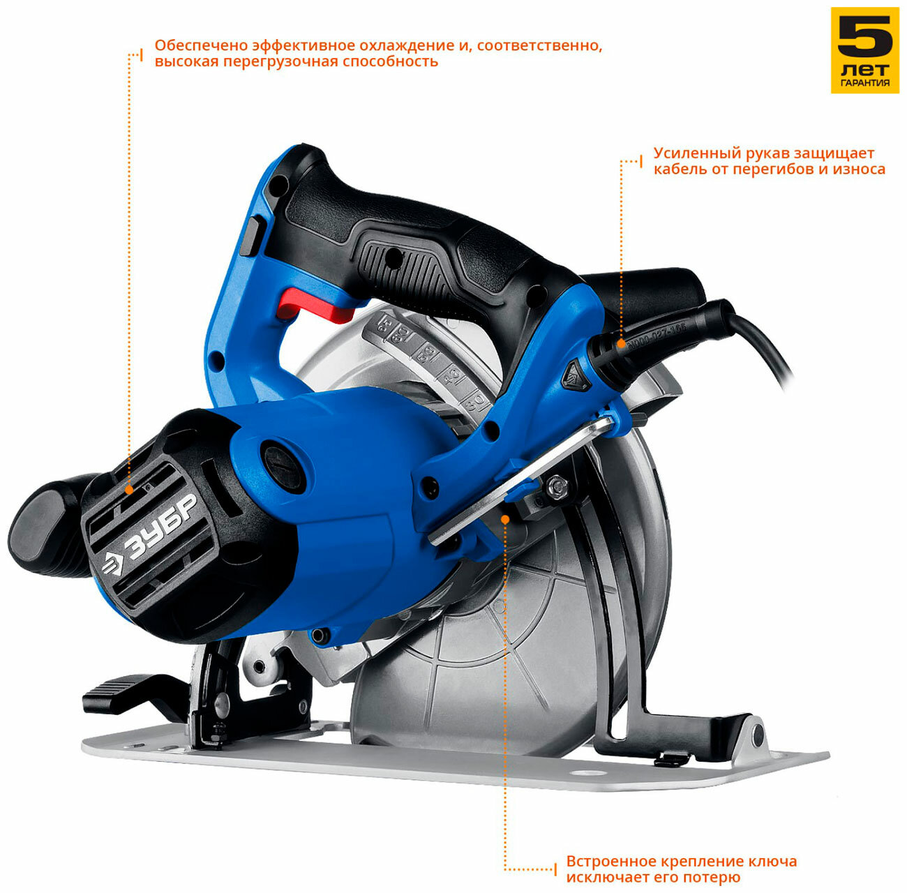 Дисковая пила ЗУБР ПДП-65, 1600 Вт синий