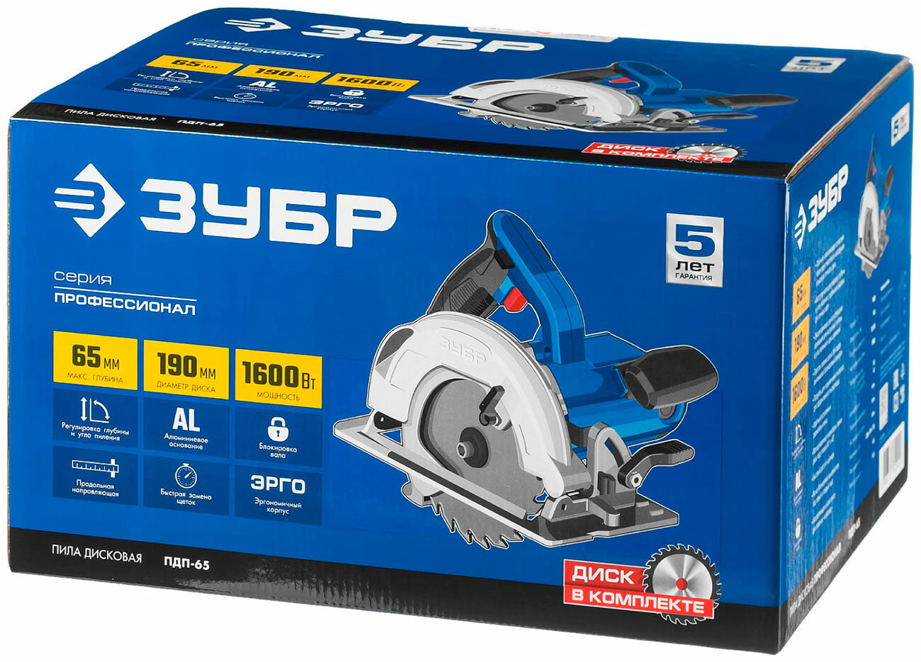Пила дисковая электрическая Зубр Профессионал ПДП-65 190 мм 1600 Вт