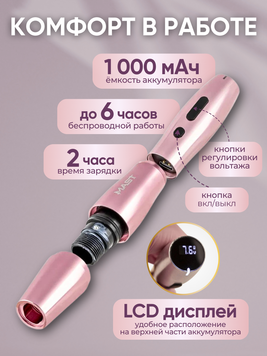 Виброплиты Беспроводная машинка для перманентного макияжа татуажа MAST P20 Permanent Rose Gold