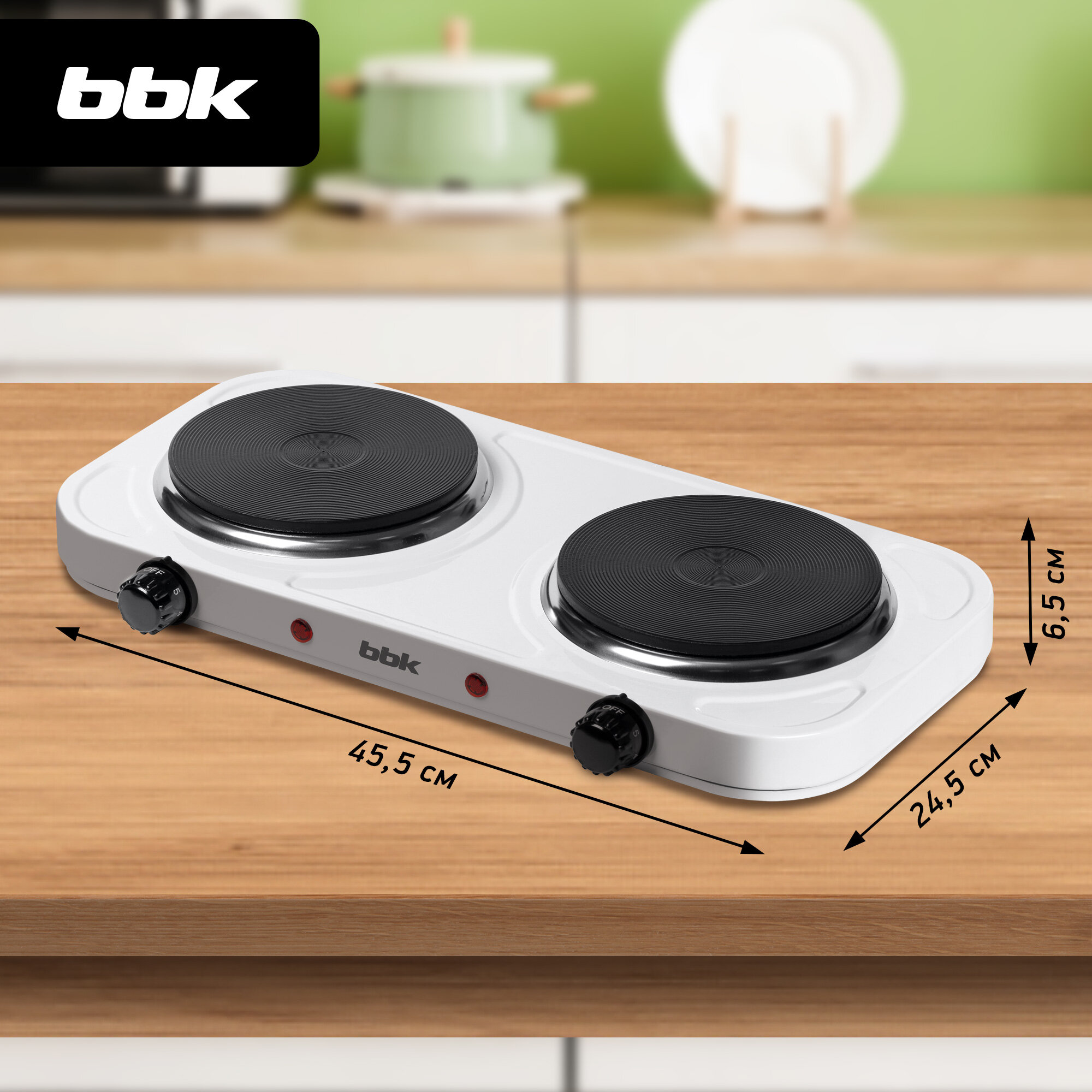 Плиты Настольная электрическая плитка BBK BHP-121 белый, 2 конфорки по 1000 Вт, 5 уровней мощности