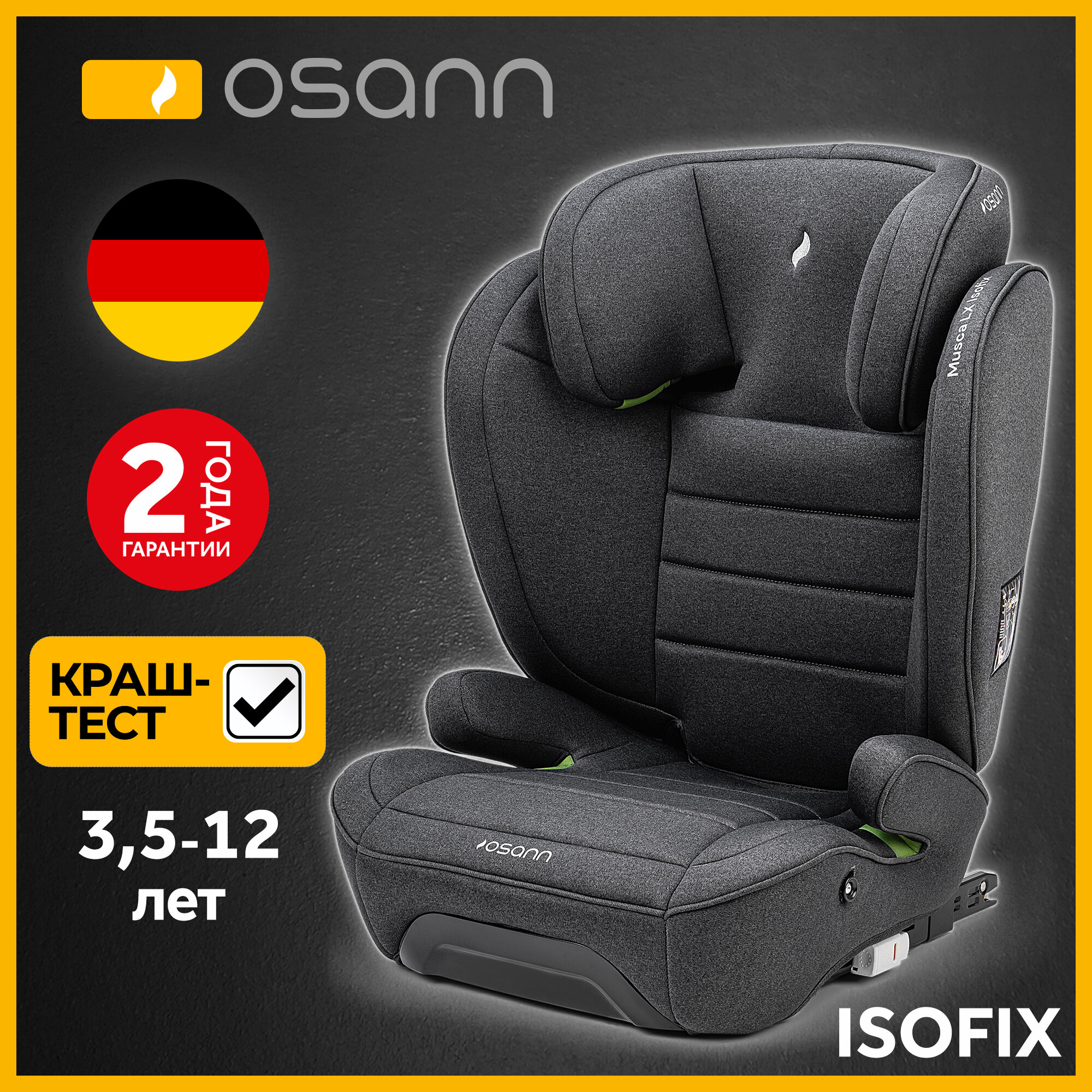 Детские автокресла Автокресло детское Osann Musca LX Isofix Dark Grey Melange для детей от 3,5 до 12 лет, ростом 100-150 см, серый