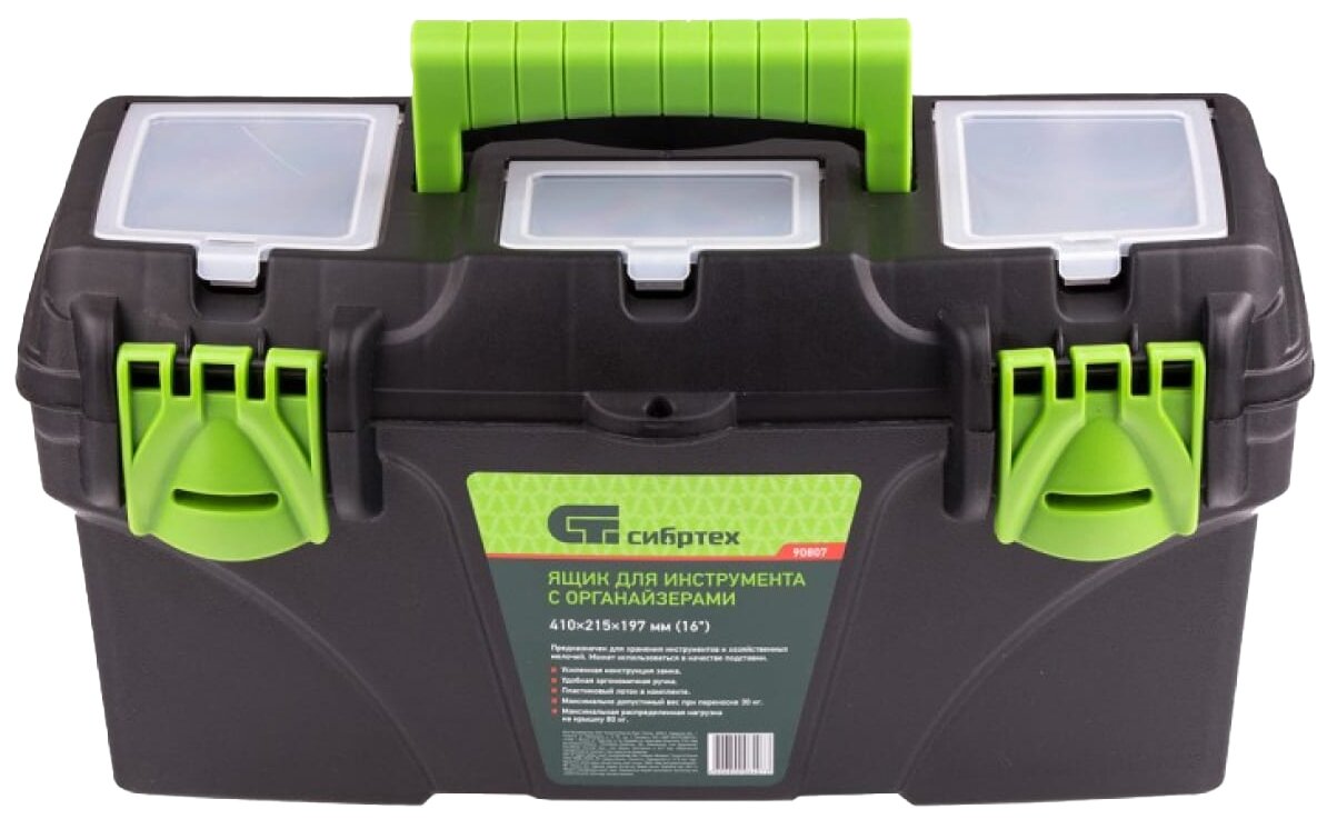 Ящик для инструментов СИБРТЕХ 90807, с органайзерами, 16”