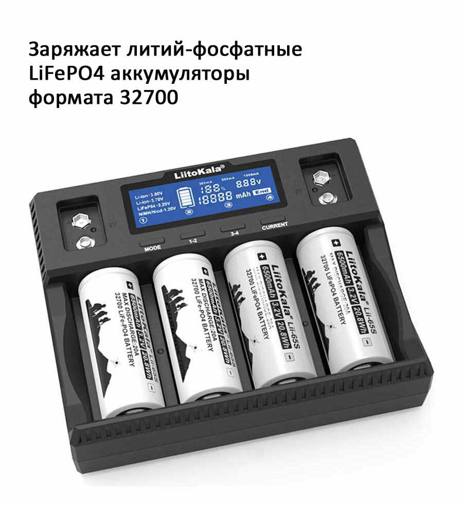 | Типоразмеры | AAA / AA / C / D / R22 (Крона) / 10440 / 14500 / 16340 (CR123) / 17500 / 17670 / 18350 / 18490 / 18650 / 20700 / 21700 / 26650 |