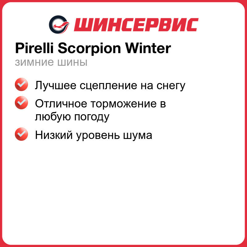 Автомобильные шины Pirelli Scorpion Winter 50 107 ₽ Подробнее