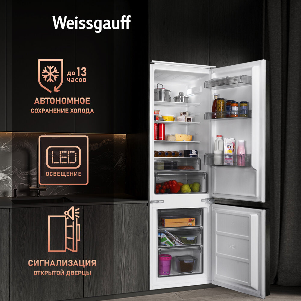 Встраиваемый холодильник Встраиваемый холодильник Weissgauff WRKI 2801 MD двухкамерный, Сохранение холода 13 часов