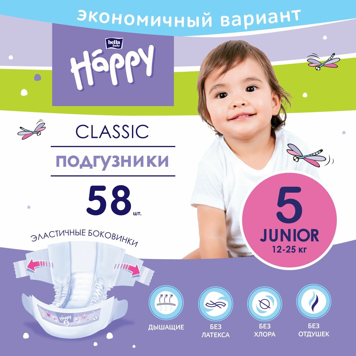 Bella Baby Happy Подгузники Classic Junior 5, 12-25 кг. (58 шт.)