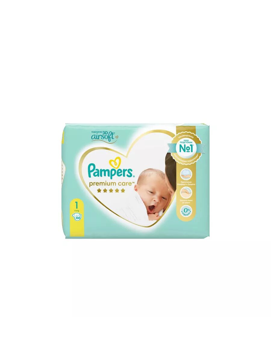 Подгузники Pampers Premium Care для малышей 2-5 кг, 1 размер, 66 шт