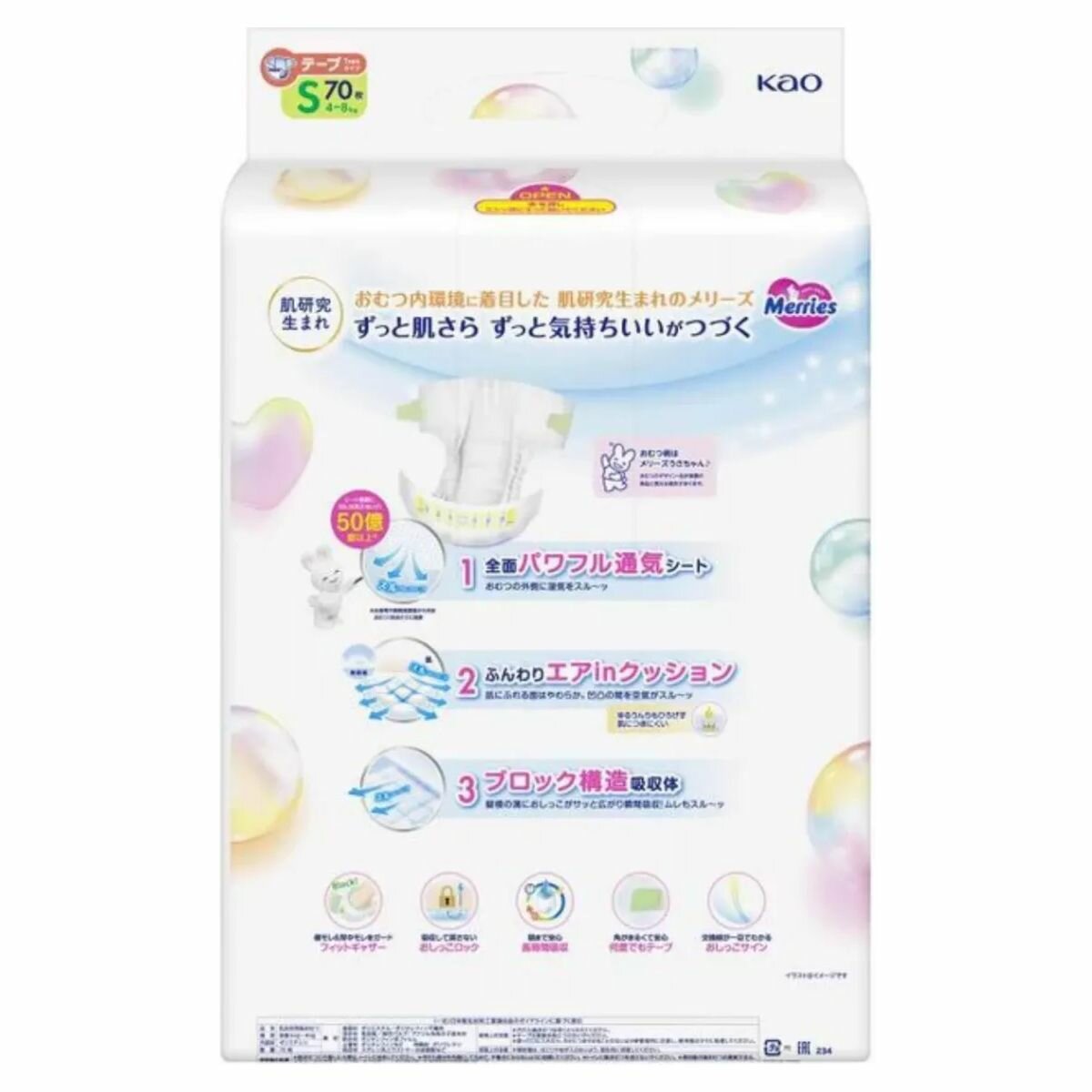 Подгузники MERRIES (Мерриес) размер S (4-8 кг) 82 шт