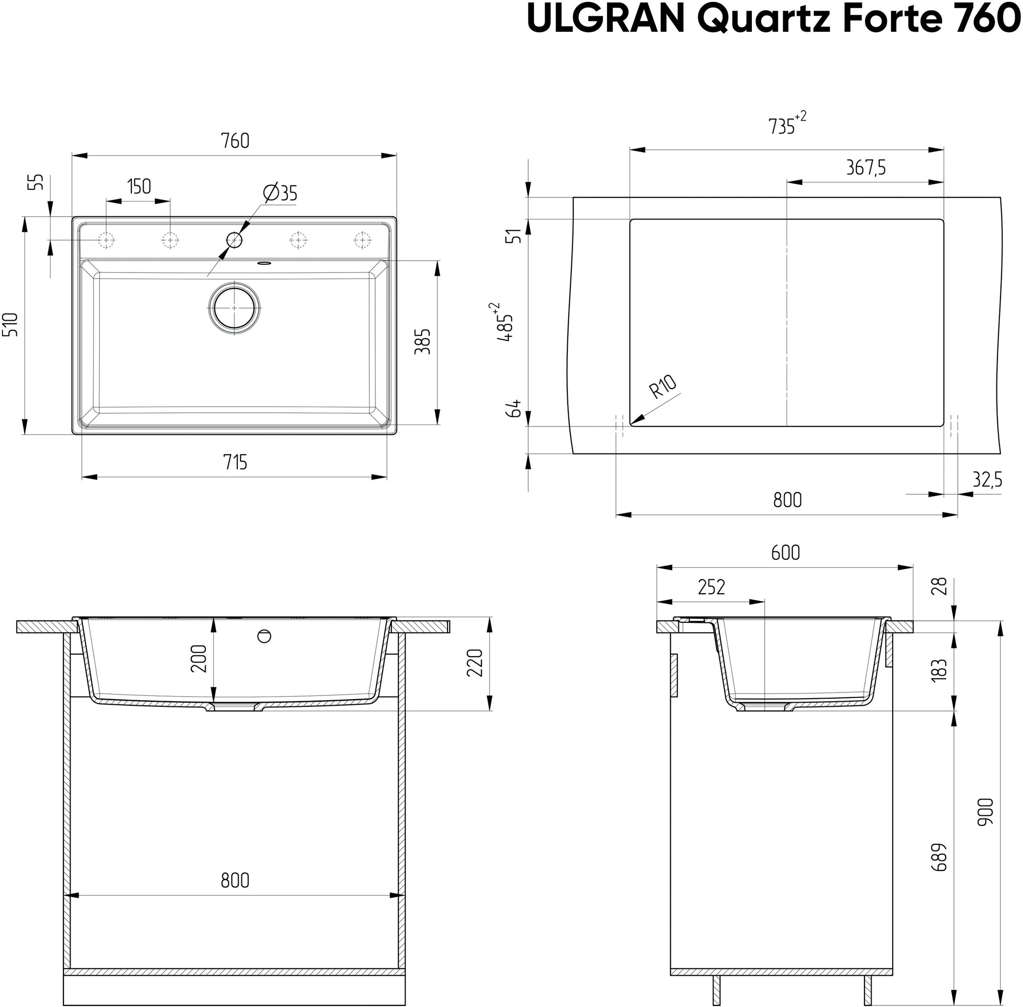 Мойка для кухни Ulgran Quartz 75 см Forte 760-01