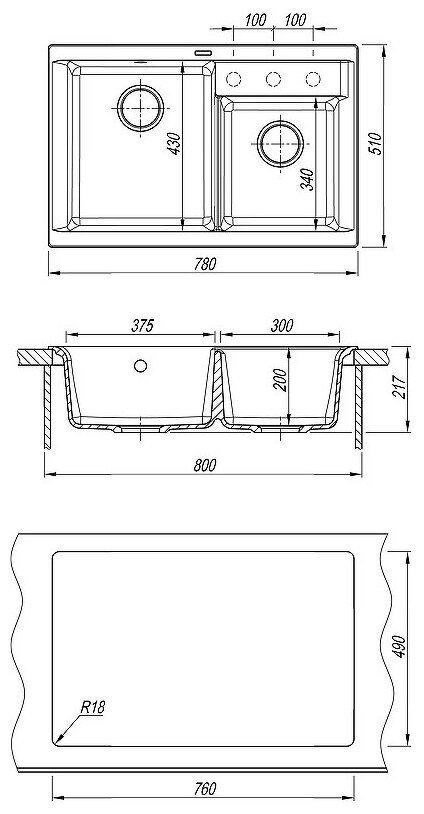 | Размеры врезного отверстия (накладная) | 755x475 мм |