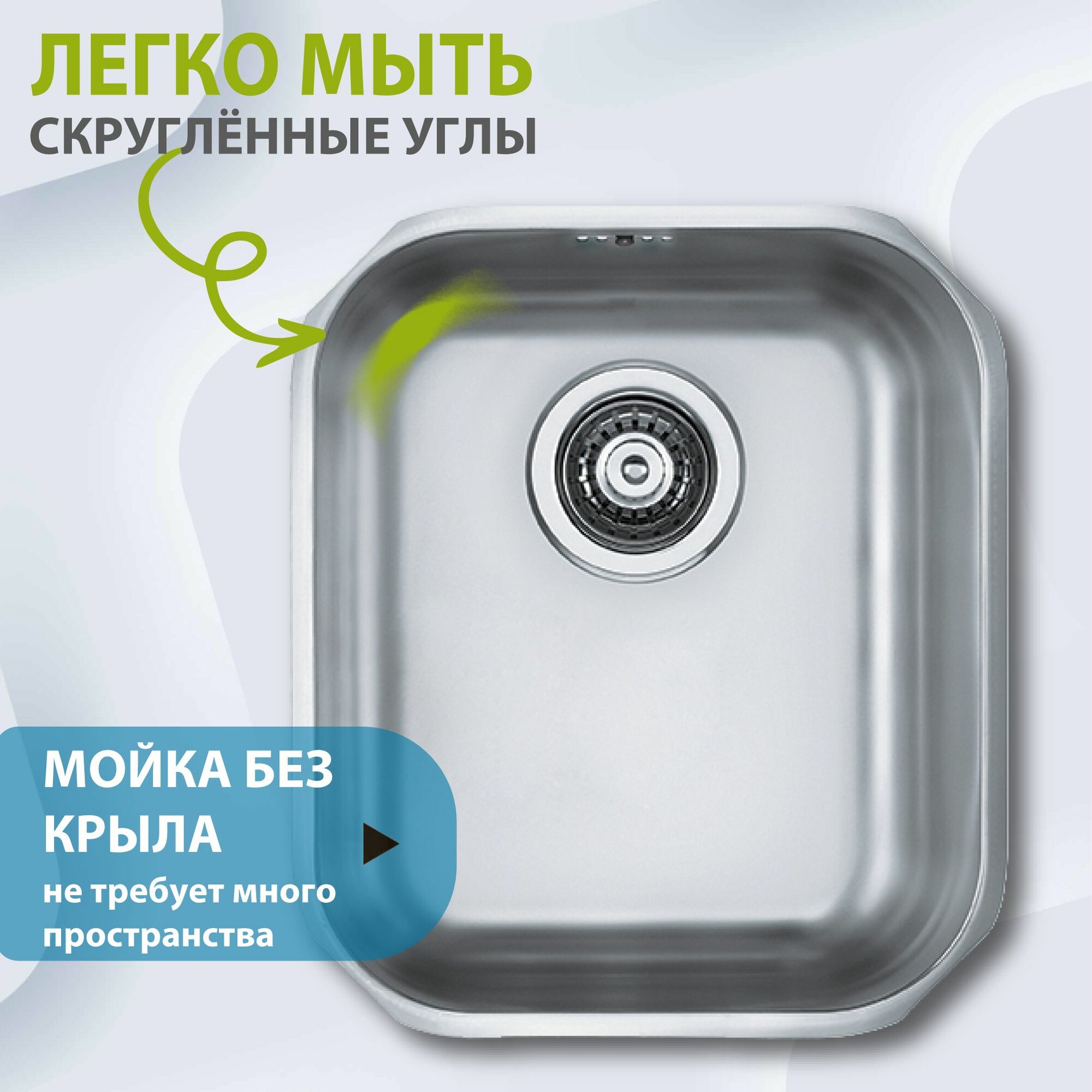 Мойка для кухни нержавеющая сталь ALVEUS VARIANT 40 SAT-90 34х40х18,5 см (слив вдоль короткой стороны) встраиваемая под столешницу с сифоном. Цвет серый металлик 8 188 ₽ Подробнее