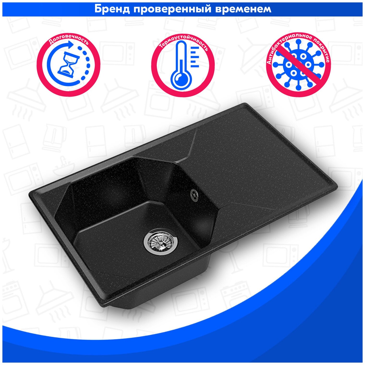 GranFest QUADRO GF-Q-780 L, мойка, мрамор, черный