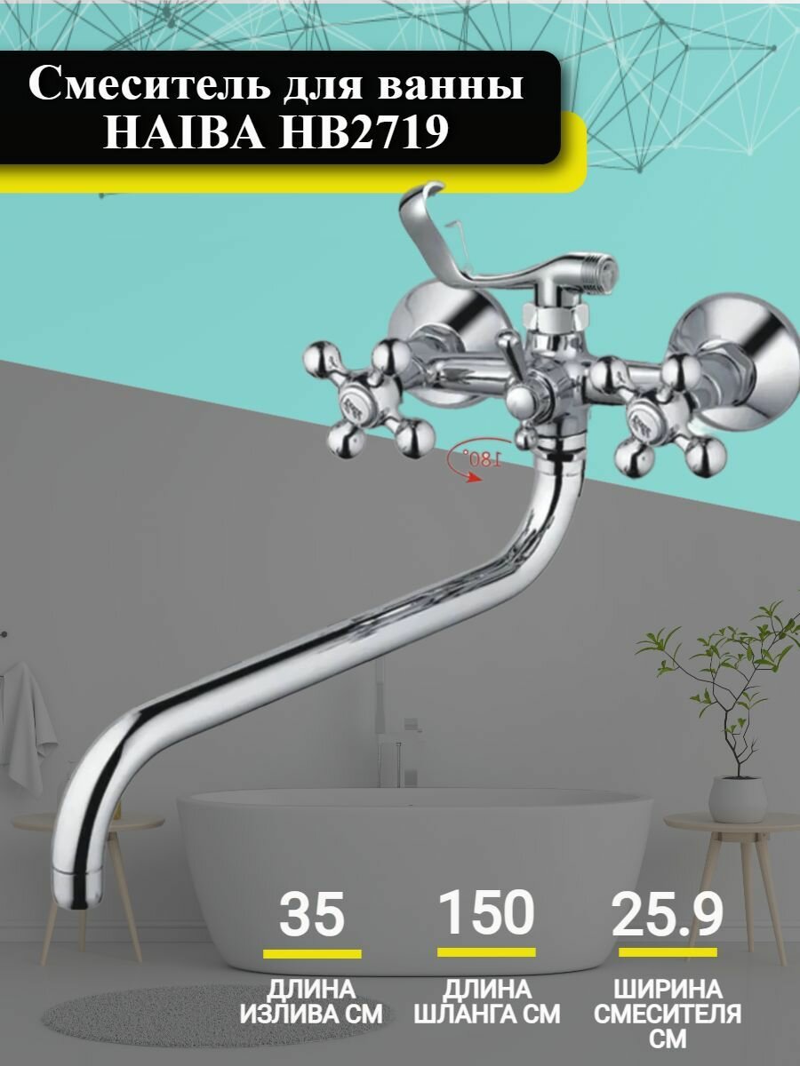 Смеситель для ванны Haiba HB2719, хром 5 275 ₽ Подробнее