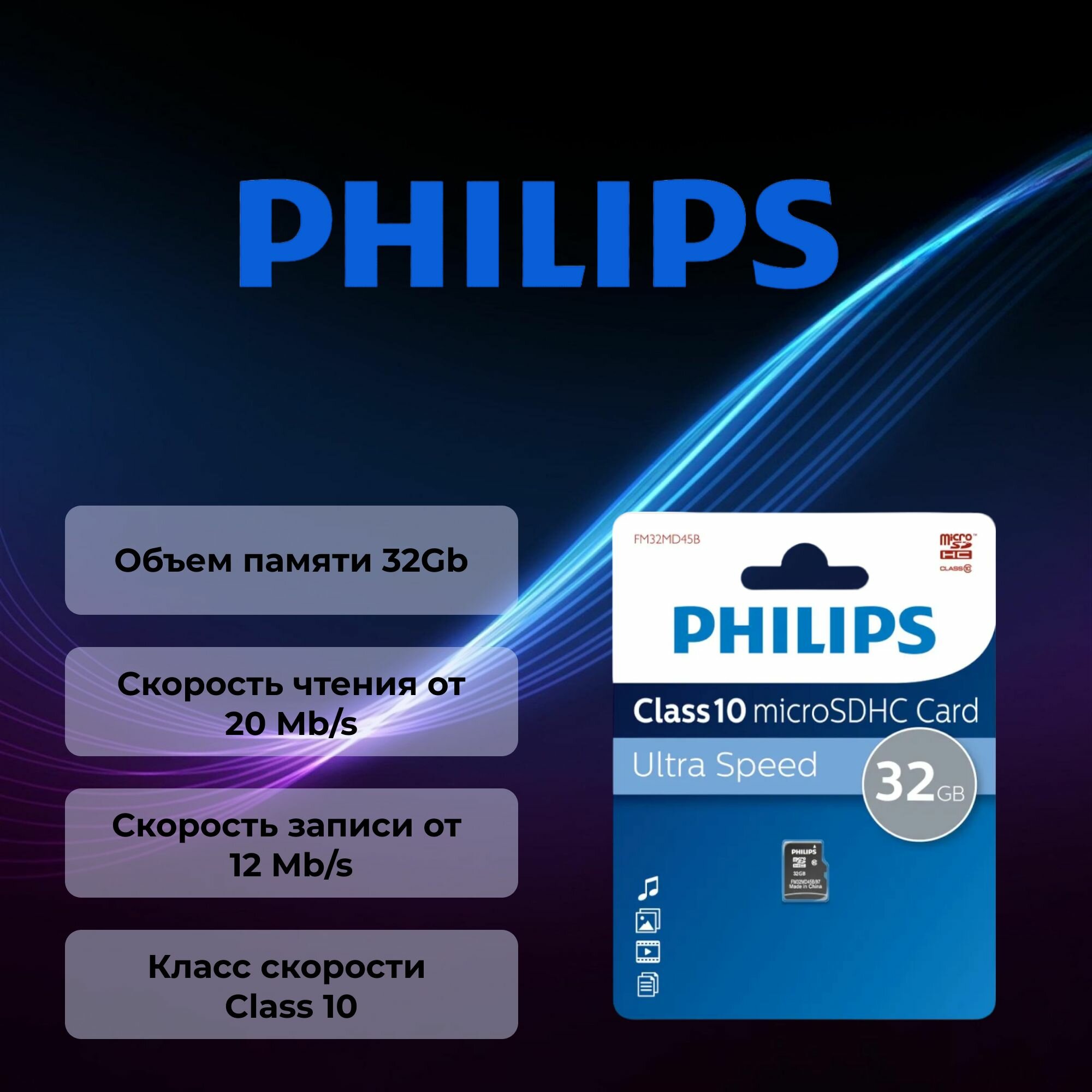 Карты памяти Карта памяти microSD, 32GB PHILIPS microSDHC Class 10