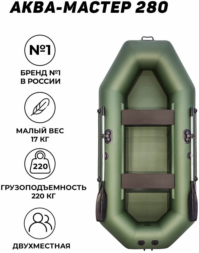 Надувные лодки Лодка надувная Аква-Мастер 280, ПВХ, армированная, зелёная, двухместная