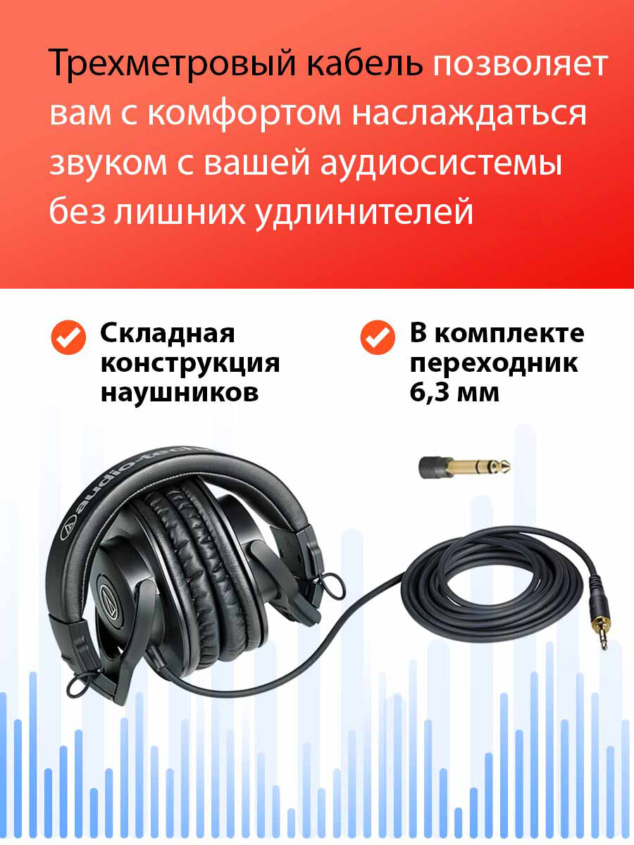 Наушники полноразмерные AUDIO-TECHNICA ATH-M30X кабель 3 метра, чёрные