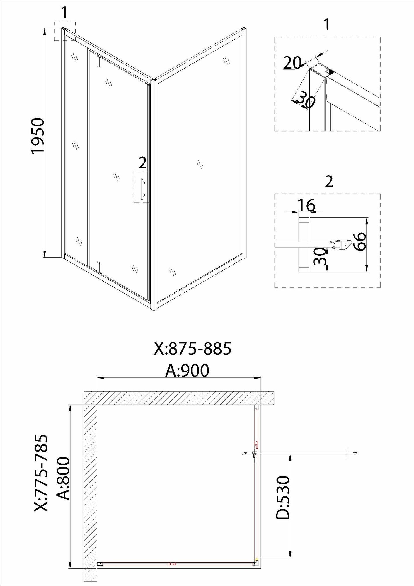 Душевое ограждение Niagara NG-0290-08 BLACK (900х900х1900) квадрат, дверь распашная, 1 место