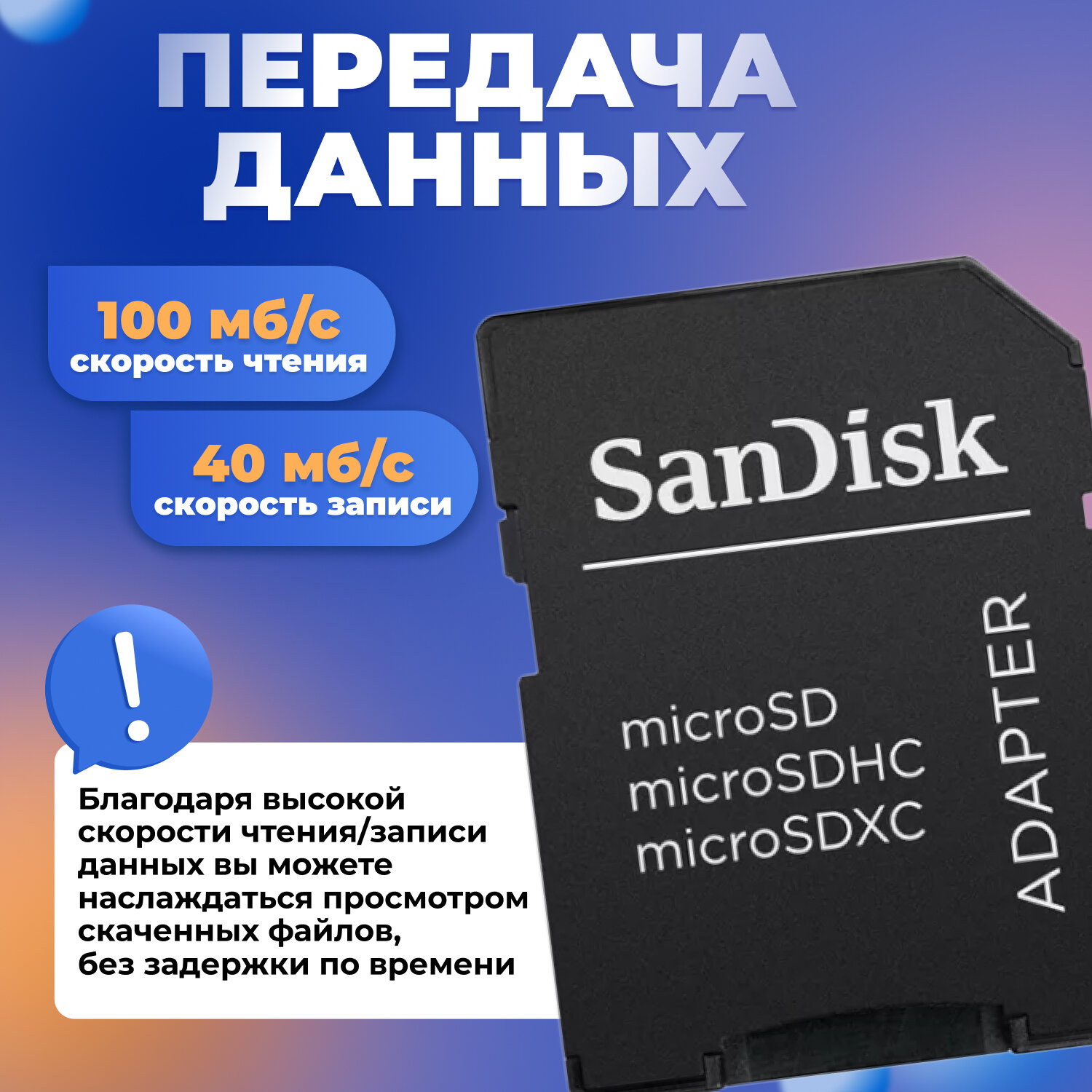Карта памяти SanDisk microSDXC 256 ГБ Class 10, UHS-I U3, R/W 100/40 МБ/с, адаптер на SD