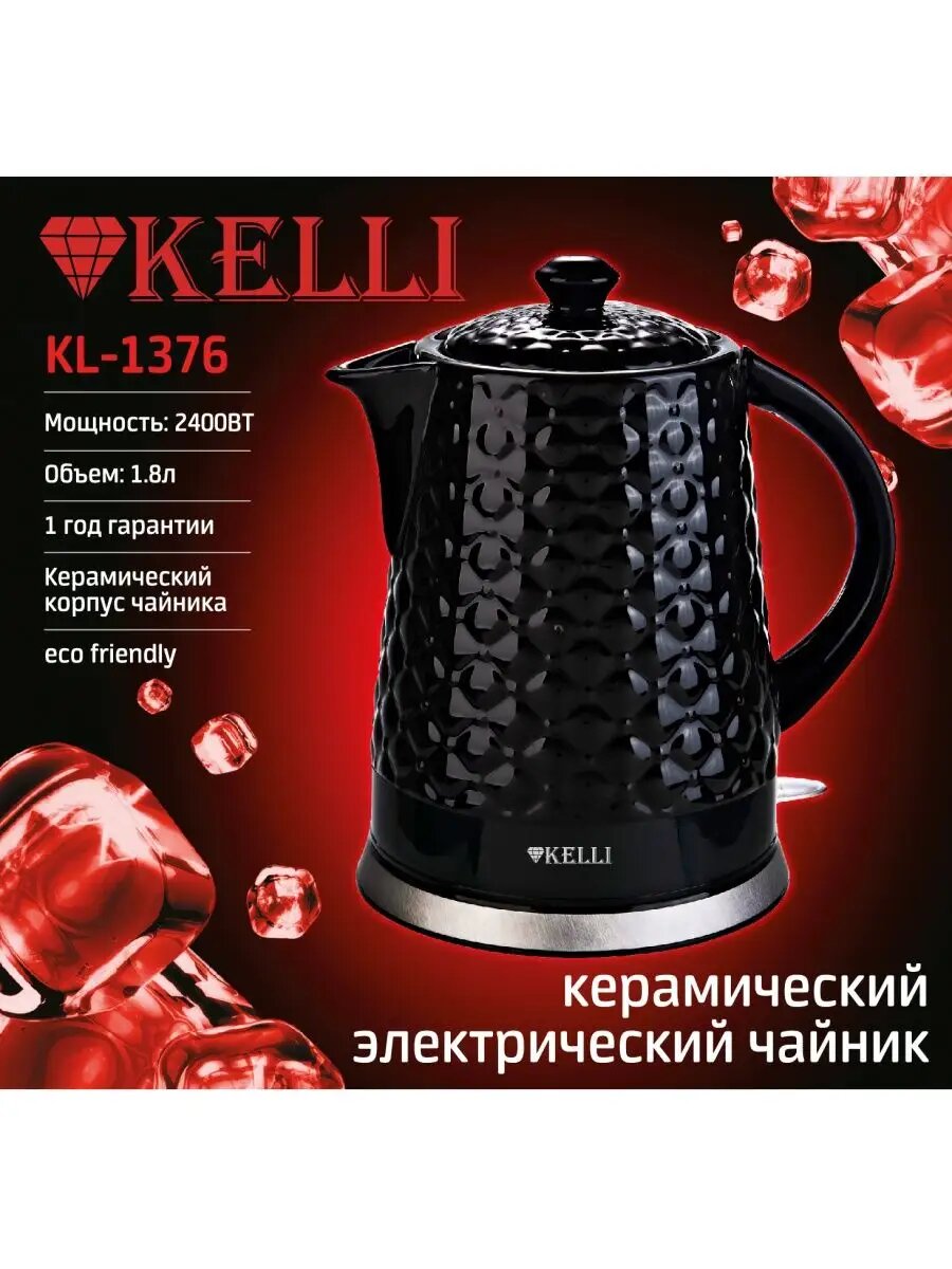 Кофеварки и кофемашины KELLI 6920690013767 Чайник Kelli KL-1376 керамич./черный, 1,8л