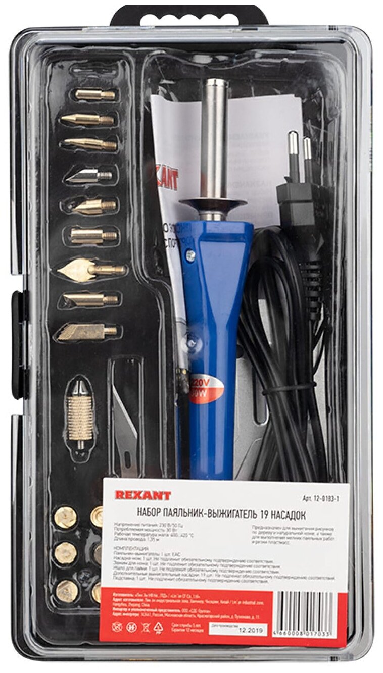 Rexant 12-0183-1 Набор паяльник-выжигатель (19 насадок) Профи 220V/30 Вт .