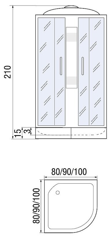 Душевые кабины Душевая кабина 80x80x210 River NARA LIGHT 80/15 МТ