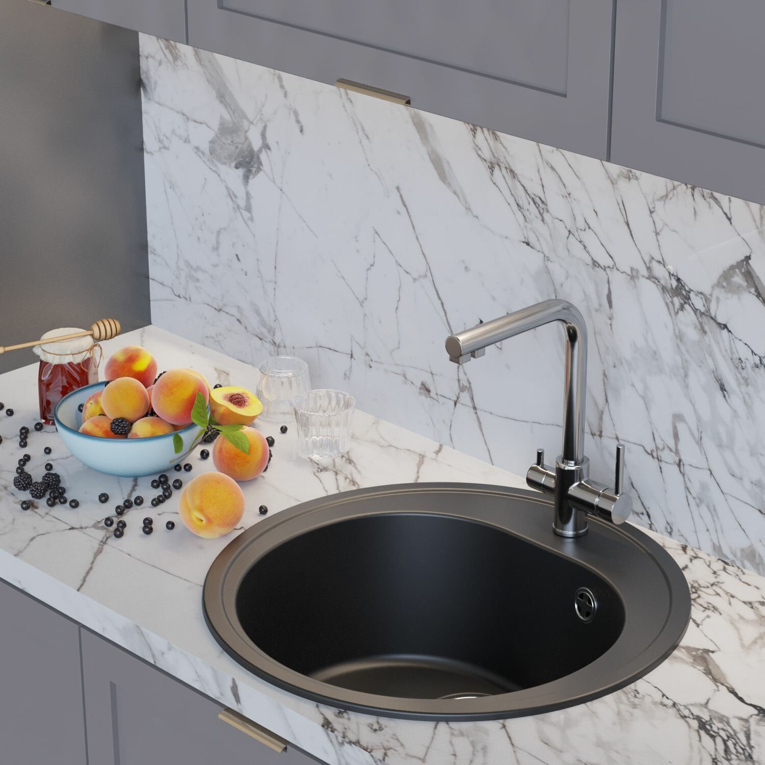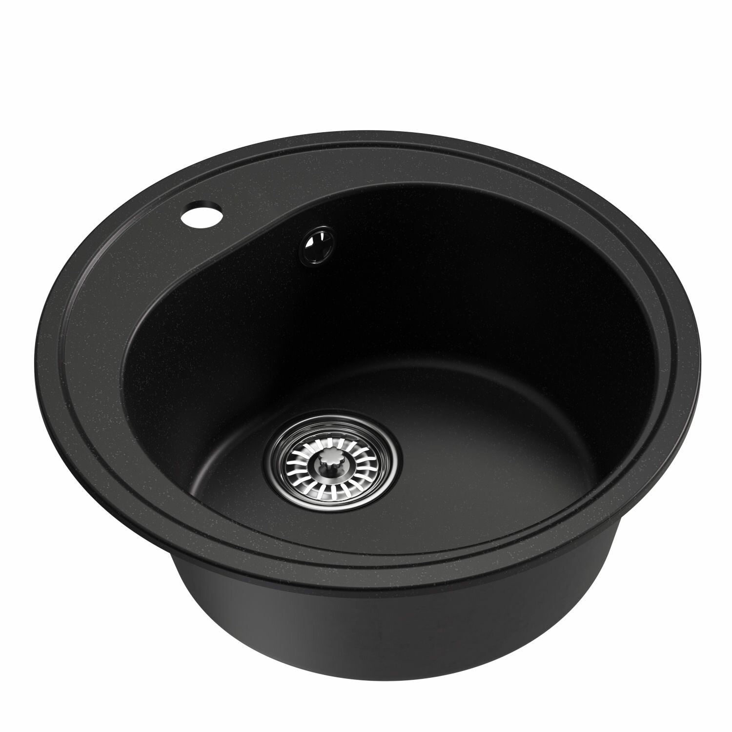 Кухонная мойка Мойка для кухни из искусственного мрамора круглая, с сифоном, MIXLINE ML-GM 11, ультра черная