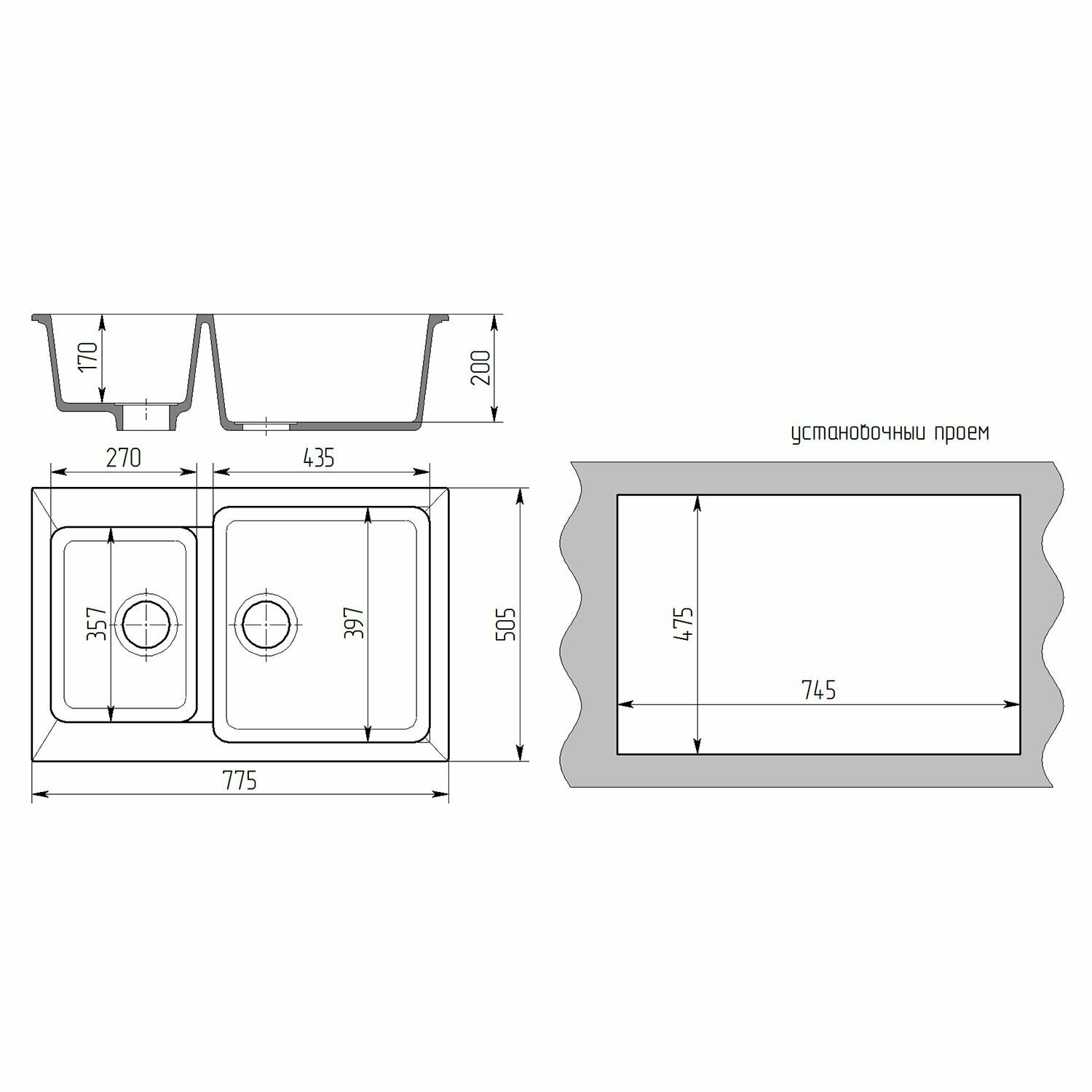 Мойка ML-GMS03 стандарт с крылом, черный (308), 605*490*190мм 6 606 ₽ Подробнее