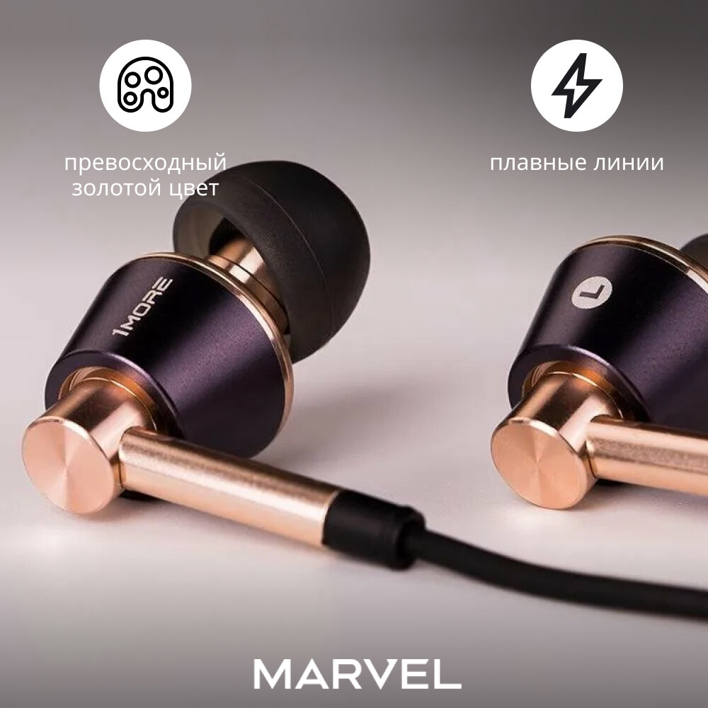 Наушники Наушники проводные 1MORE Triple Driver Gold для телефона с микрофоном, золотые