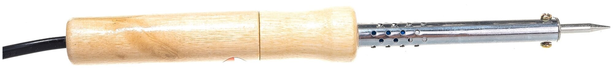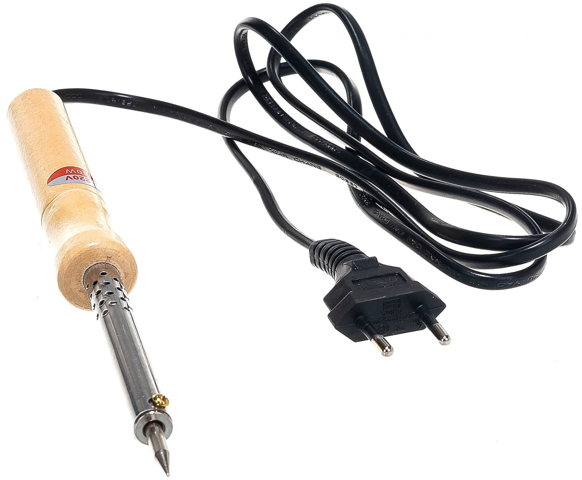 Лучшие цены. Электрический паяльник с деревянной ручкой и клинообразным жалом непрерывного нагрева предназначен для монтажной пайки и лужения оловянно-свинцовистыми припоями элементов радиоэлектронной аппаратуры и тонкостенных металлических изделий в производственных и бытовых условиях. Перед началом эксплуатации электрического паяльника паяльное жало следует подвергнуть лужению. Магазины в вашем городе.