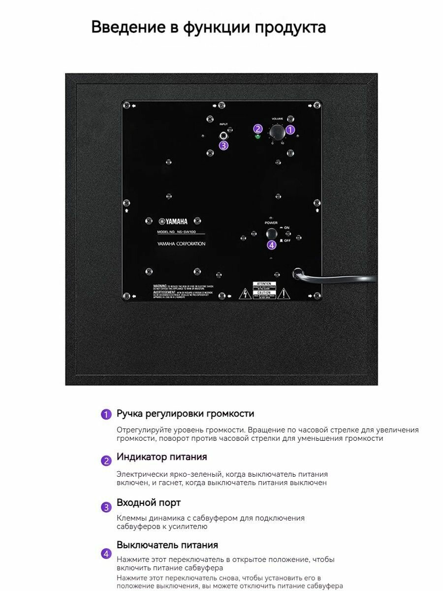 Автосабвуферы Сабвуфер Yamaha NS-SW100 Walnut, фазоинверторный, мощность 100 Вт