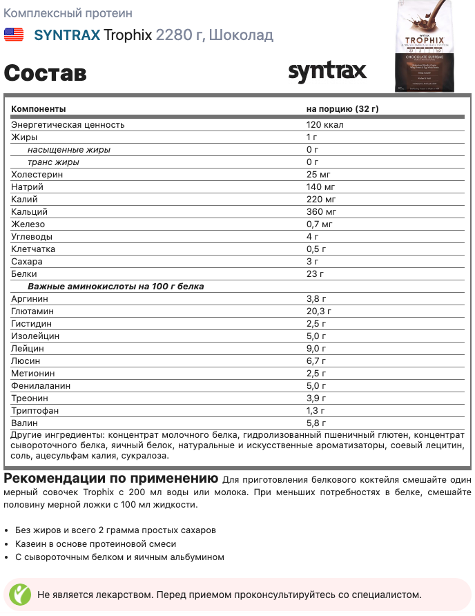 Комплексный протеин SYNTRAX Trophix 907 г, Ванильный крем 3 000 ₽ Подробнее
