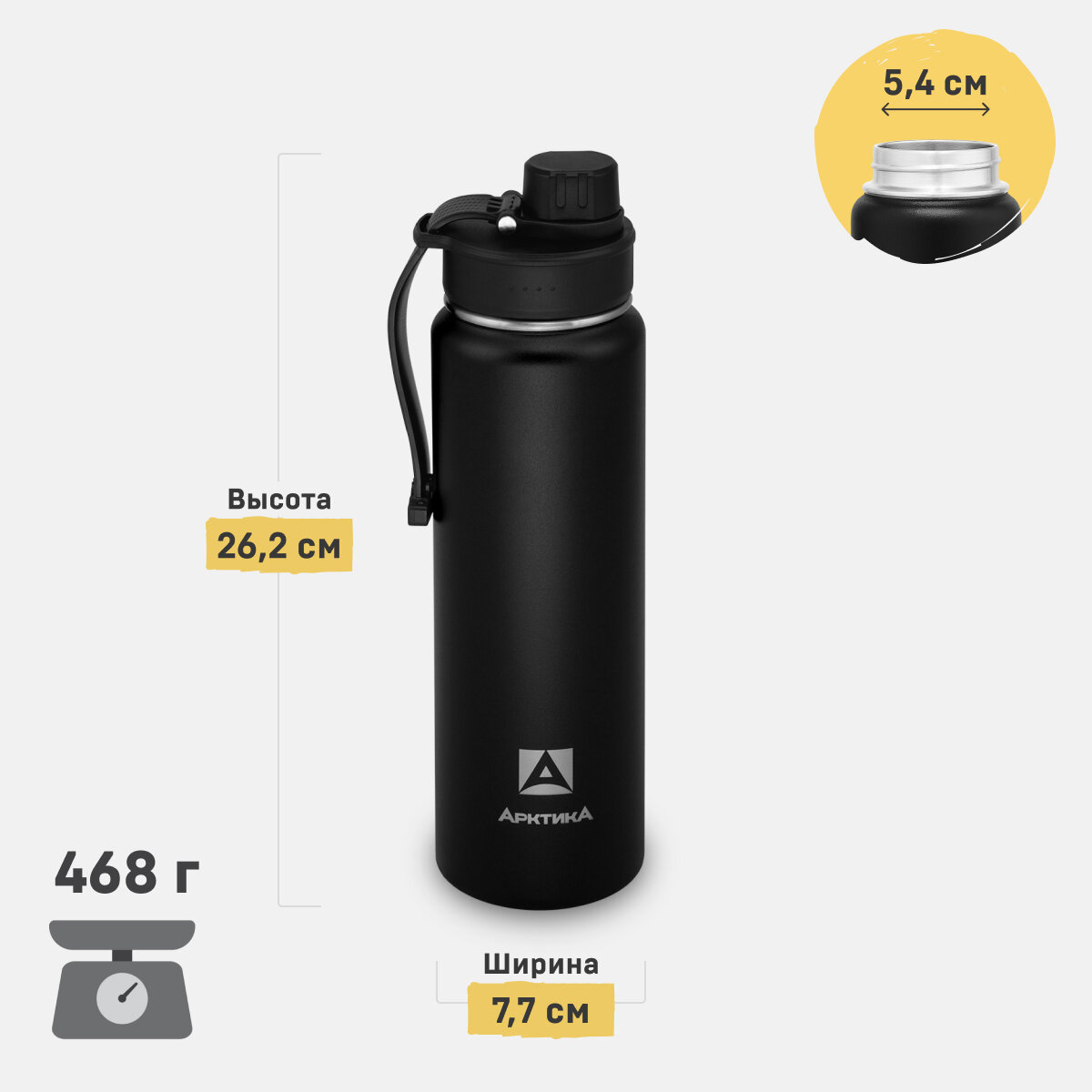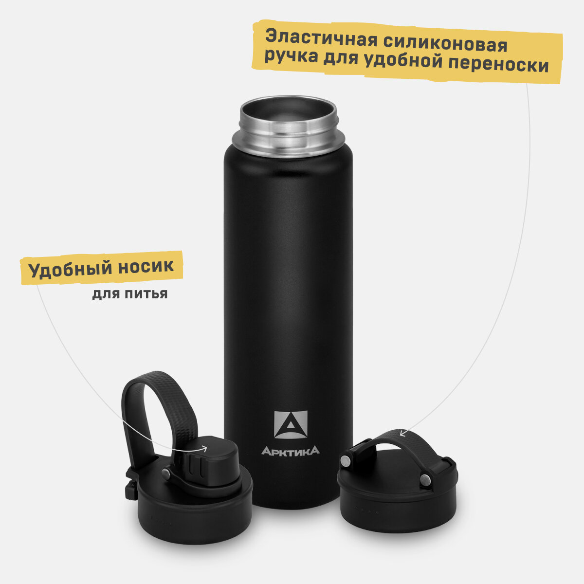 Термобутылка для воды Арктика 708-700 желтая матовая 0,7 литров термос для напитков спортивный с двумя крышками 1 620 ₽ Подробнее