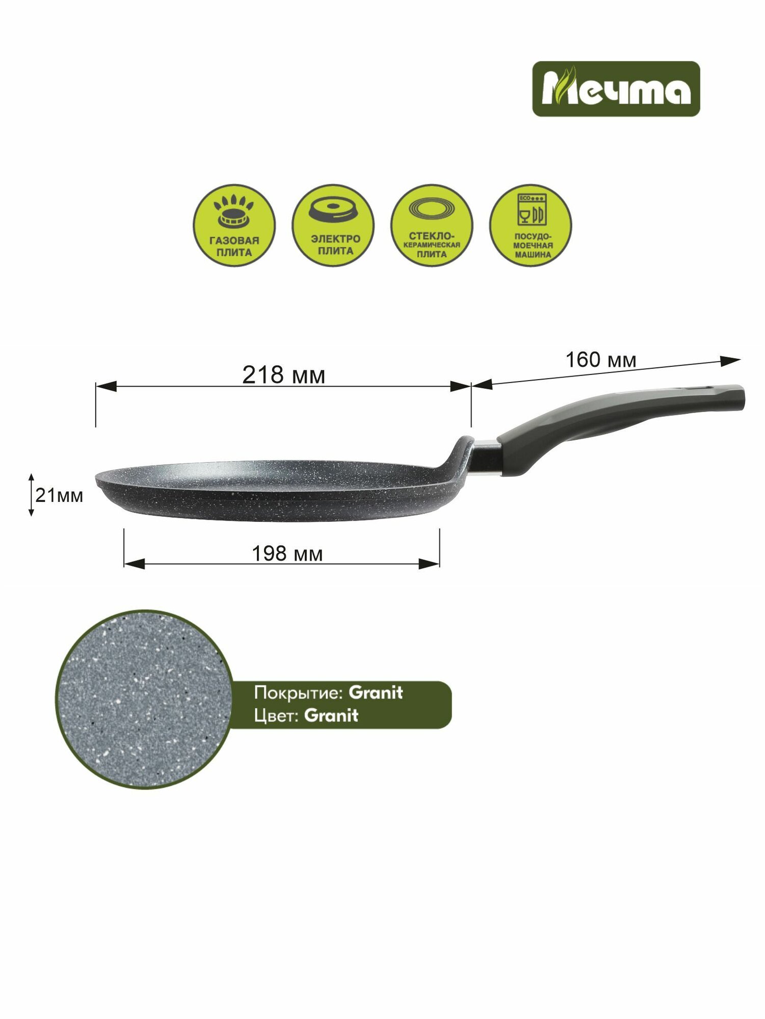 Сковорода блинная Мечта Посуда мечта Гранит, 22 см