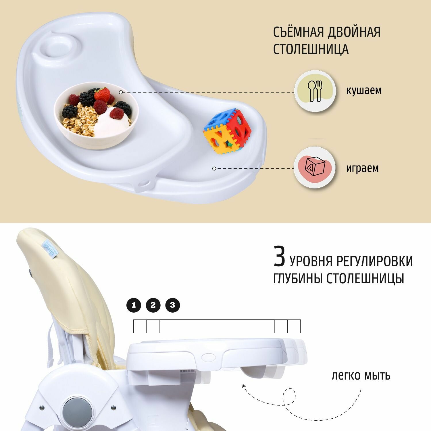 | Дополнительно | съемный столик / съемный поднос / столешница с бортиком / ремни безопасности / колеса с фиксаторами / корзина для игрушек |