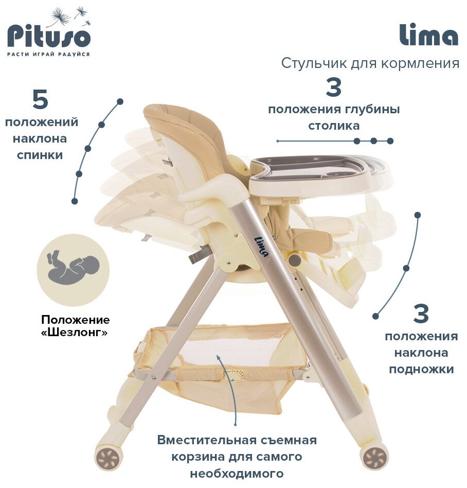 Стульчик для кормления Pituso Lima Бежевый (кожа)