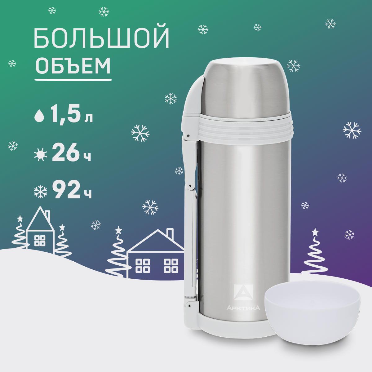 Термос для напитковеды Арктика 205-1500 1.5л. серебристыйбелый картонная коробка 205-1500SIL