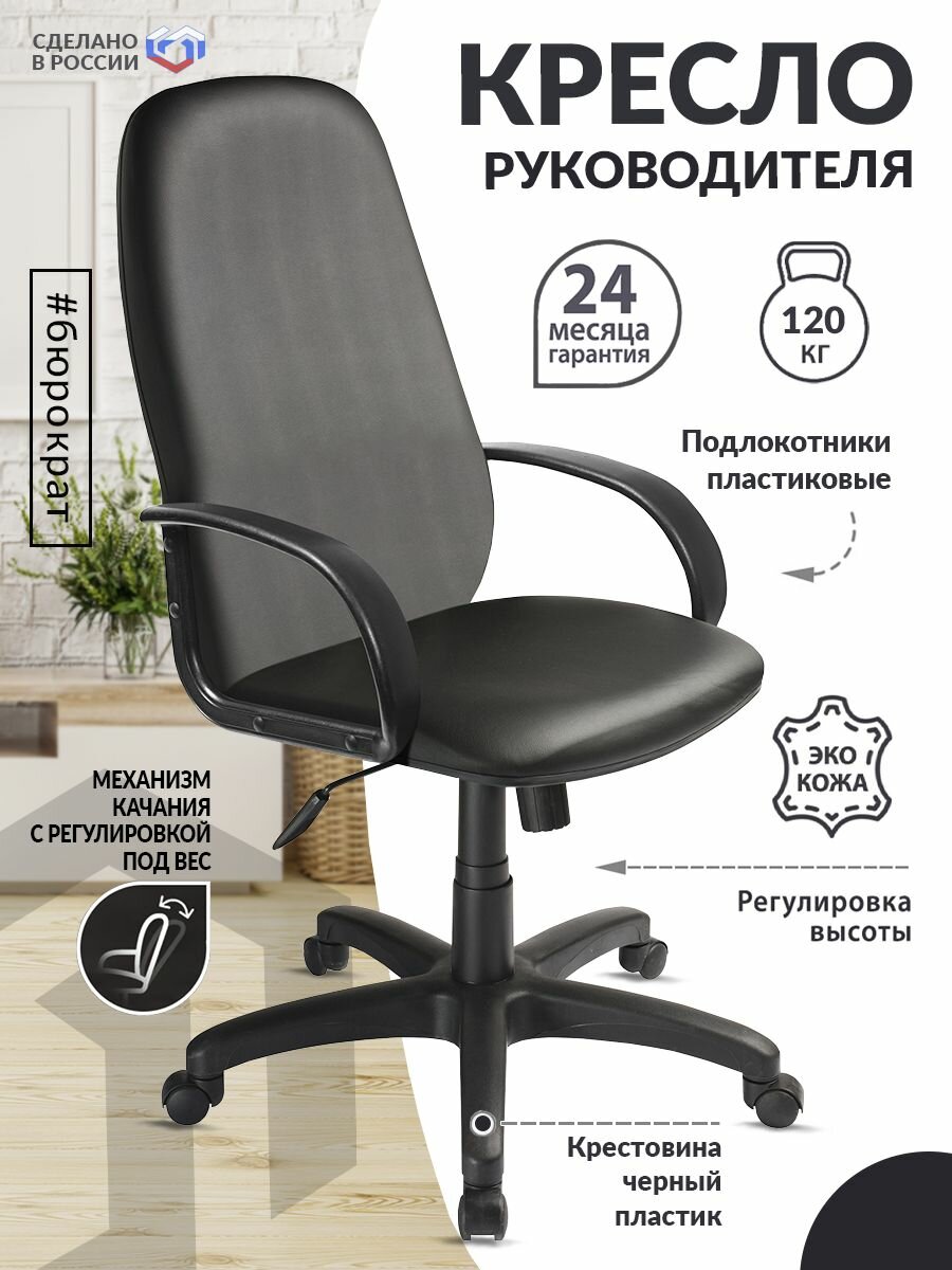 Кресло Бюрократ компьютерное черное, ткань, крестовина пластик - Кресло руководителя, с подлокотниками