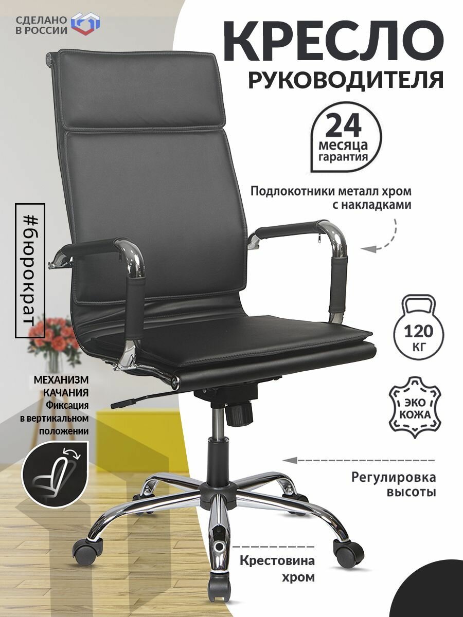Компьютерное кресло Кресло руководителя Бюрократ CH-993/black, крестовина хром, черный, искуственная кожа (664063)